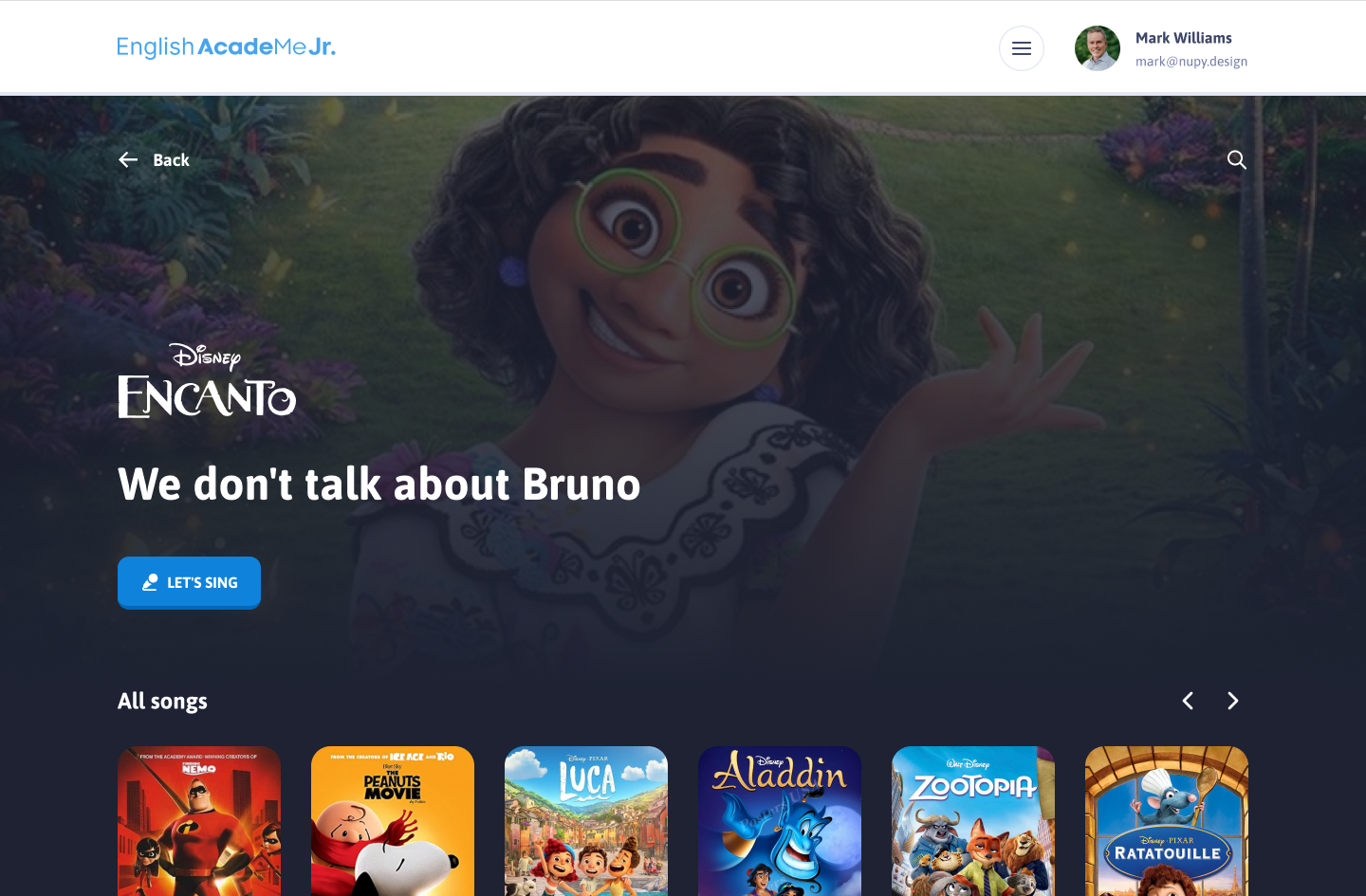 The Dedicated Karaoke Section allows students to sing along to their favorite Disney songs from movies. This feature provides an entertaining and interactive way to practice language skills, improve pronunciation, and boost confidence through music and singing.